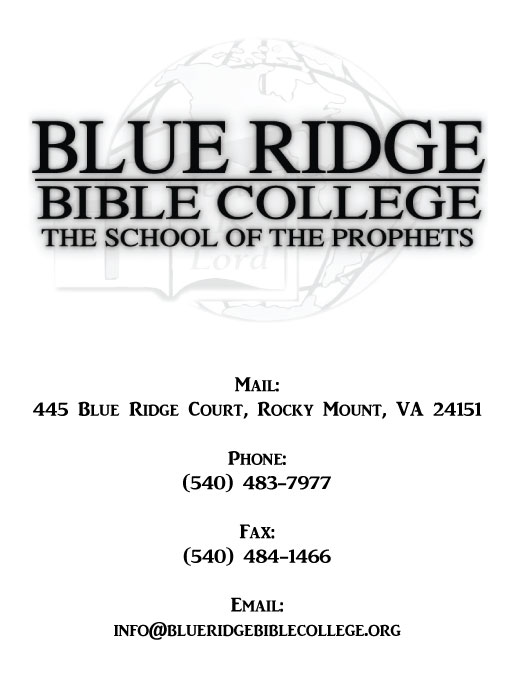 Blue Ridge Bible College - phone: (540) 483-7977 - email: info@blueridgebiblecollege.org